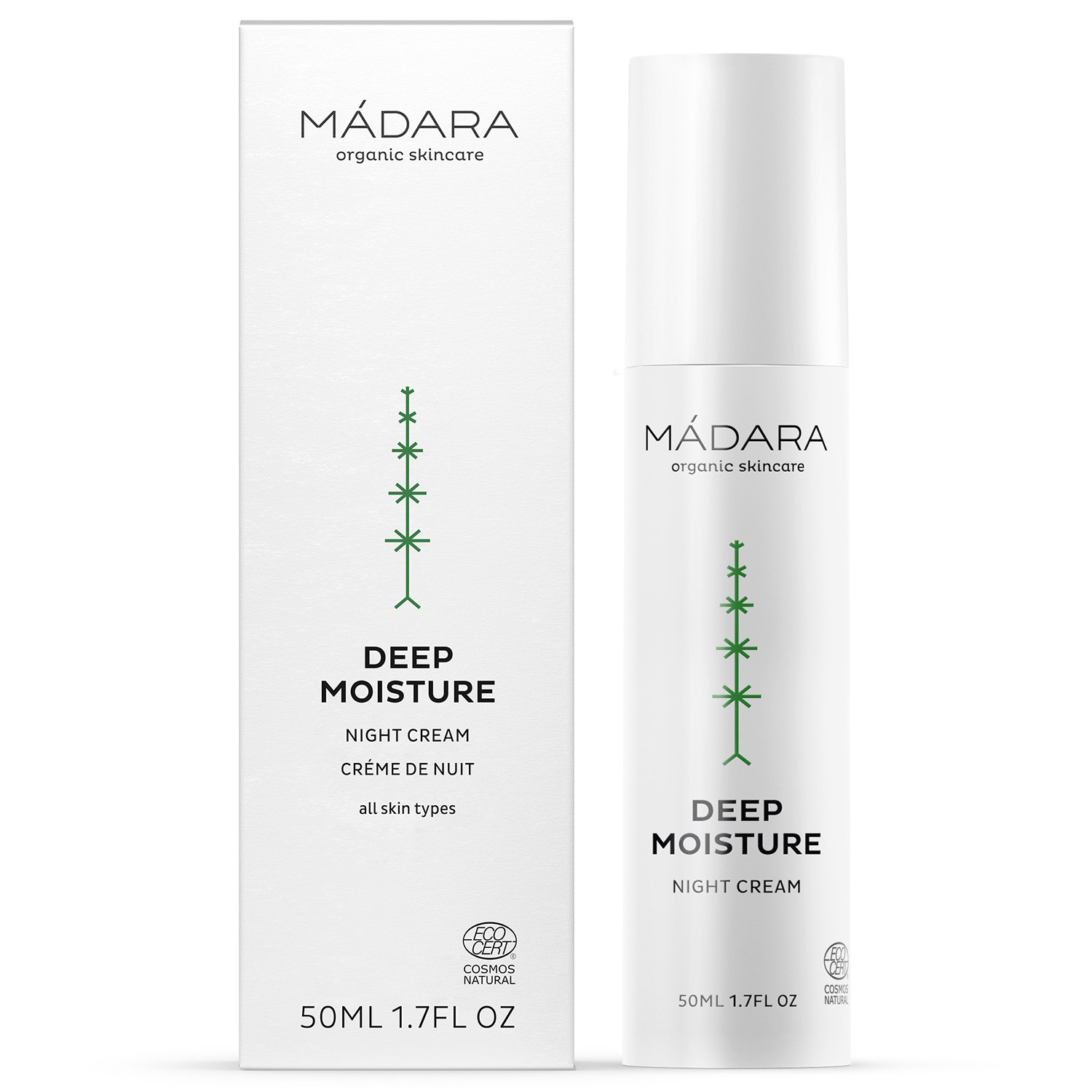 Aloe barbadensis (aloe) leaf juice*, Rosa damascena (rose) flower water*, Alcohol, Glycerin**, Simmondsia chinensis (jojoba) seed oil*, Polyglyceryl-6 distearate, Dicaprylyl carbonate, Microcrystalline cellulose, Butyrospermum parkii (shea) butter*, Jojoba esters, Persea gratissima (avocado) oil*, Sodium PCA, Lecithin, Aroma, Cetyl alcohol, Polyglyceryl-3 beeswax, Xanthan gum, Cellulose gum, Palmitic acid, Stearic acid, Artemisia vulgaris (mugwort) extract*, Rubus idaeus (raspberry) fruit extract*, Tilia cordata (linden) flower extract*, Trifolium pratense (red clover) flower extract*, Cellulose, Mica (CI 77019)****, Benzyl alcohol, Ascorbyl palmitate, Sodium hyaluronate, Tocopherol, Aqua, Sodium phytate, CI 77891 (titanium dioxide)****, Lactic acid, Vanilla planifolia (vanilla) fruit extract*, Sodium benzoate, Hydrolyzed hyaluronic acid, Potassium sorbate, Limonene***, Linalool***, Citral***. * = ekologisk, ** = framställt av ekologiska ingredienser, *** = från naturliga eteriska oljor, **** = rena mineralpigment.