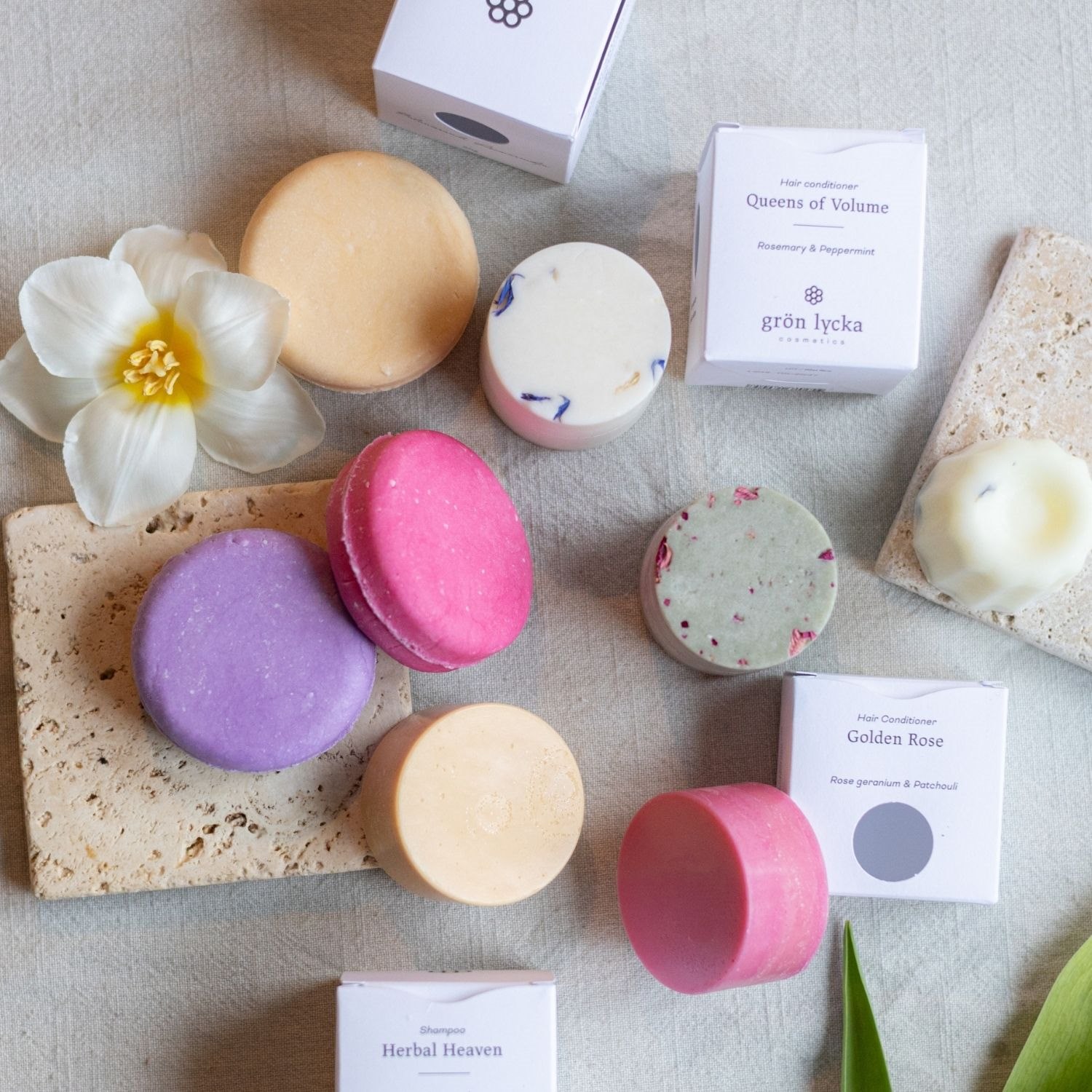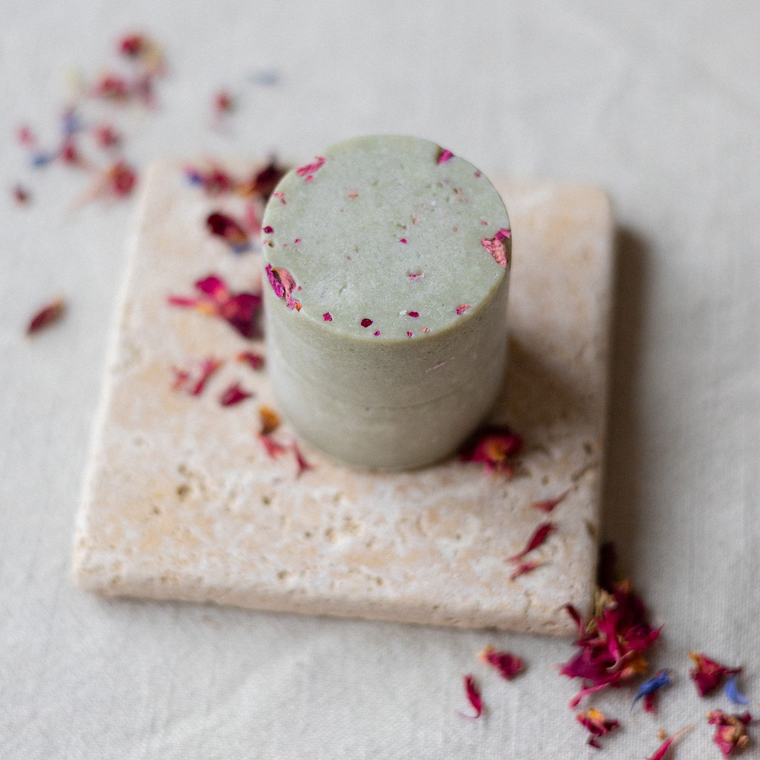 Sodium cocoate, Maris sal (sea salt), Sodium shea butterate, Sodium canolate, Aqua, Sodium safflowerate, Glycerin, Rosmarinus officinalis (rosemary) leaf oil, Mentha piperita (peppermint) oil, Sodium lactate, Mica, CI 77891, CI 77492, CI 77007, CI 77288, Sodium chloride, Limonene*, Beta-caryophyllene*, Menthol*, Camphor*, Pinene*. * = doftkomponent i eterisk olja.