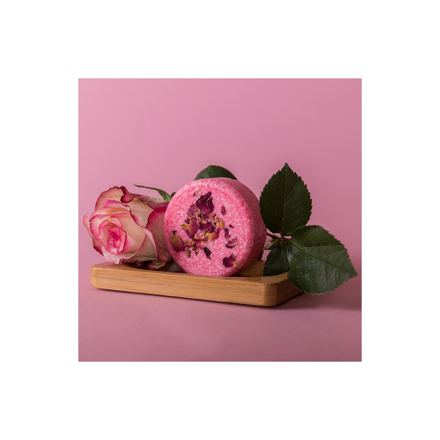 Sodium cocoate (saponified coconut oil*^), Sodium palmate (saponified palm oil*^), Aqua, Glycerin*, Parfum (natural rose fragrance), Sodium olivate (saponified olive oil*^), Cannabis sativa (hemp) seed oil*, Simmondsia chinensis (jojoba) seed oil*, Sodium chloride (sea salt), Citric acid, Tocopherol (vitamin e), Citral**, Citronellol**, Geraniol**, Limonene**, Linalool**. * = ekologisk, ** = från rena eteriska oljor, ^ = rättvisemärkt.